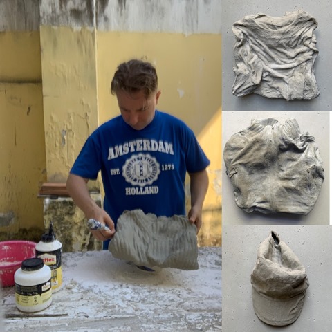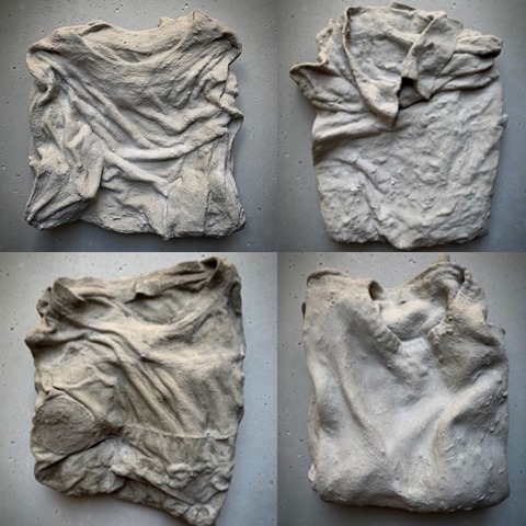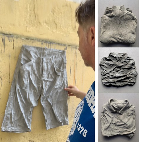 For my concrete sculptures, I use my personal clothing. Through my artistic process in which I use plaster, resin and cement, I transform these articles of clothing into artworks to hang. The intended effect is that my DNA and my memory remain inside the concrete, so that the person who looks at these sculptures is transformed into a type of postmodern archeologist, studying my work as urban artifacts.